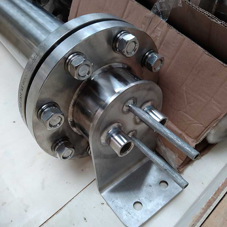 冷卻器由內螺旋管、外螺旋管組成。共同安裝在一個筒體內。外螺旋管在呈螺旋運行的冷卻水中進行熱交換;內螺旋管在呈渦流運動的冷卻水中進行熱交換,兩種冷卻水巧妙地匹配在一只冷卻器中進行流動。
