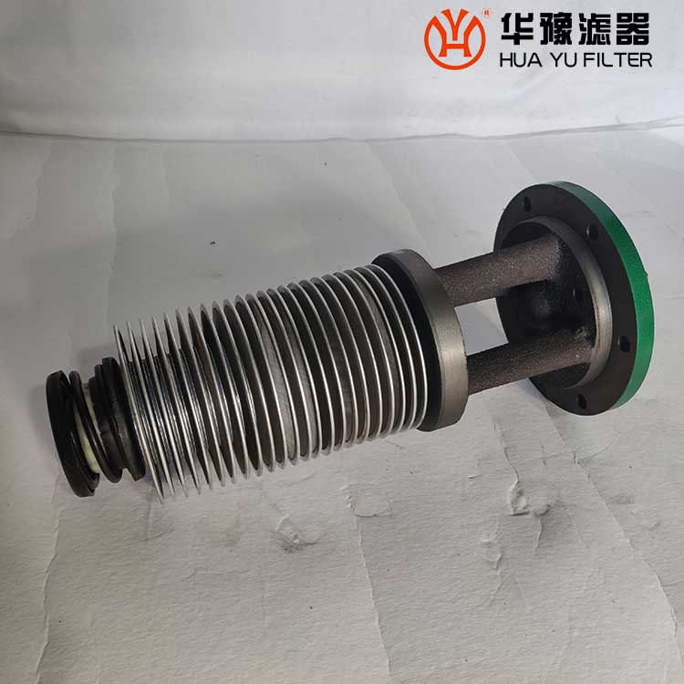 每一濾芯組件由濾器蓋、濾芯套筒、濾片及濾片圈等組成,濾器蓋頂部裝有放氣閥,供排出濾器內腔的空氣用。 濾片套在濾芯套筒上,是濾器的主要過濾元件,由濾網,支承網及波紋隔盤等組成,濾網的網目數由用戶根據需要選用。轉換閥體是由鑄鋁鋁合金制成的椎體,與閥孔研磨配合,閥體上鑄有上下兩油道孔,上油道孔一端通濾芯上方油腔,一段通濾器出口,下油道孔一段通濾芯腔,一段通濾器進口,當轉換閥迅速從一極限位置轉至另一極限位置時,閥體將一濾芯腔的通路關閉,而將另一濾芯腔的通路打開,此時,壓力油從濾器進口流入濾芯腔,經濾網過濾后的清潔油經上方油腔從出口流出,達到濾清油液的目的。轉換閥體軸端頭上的箭頭指向接通的濾芯腔的一邊。